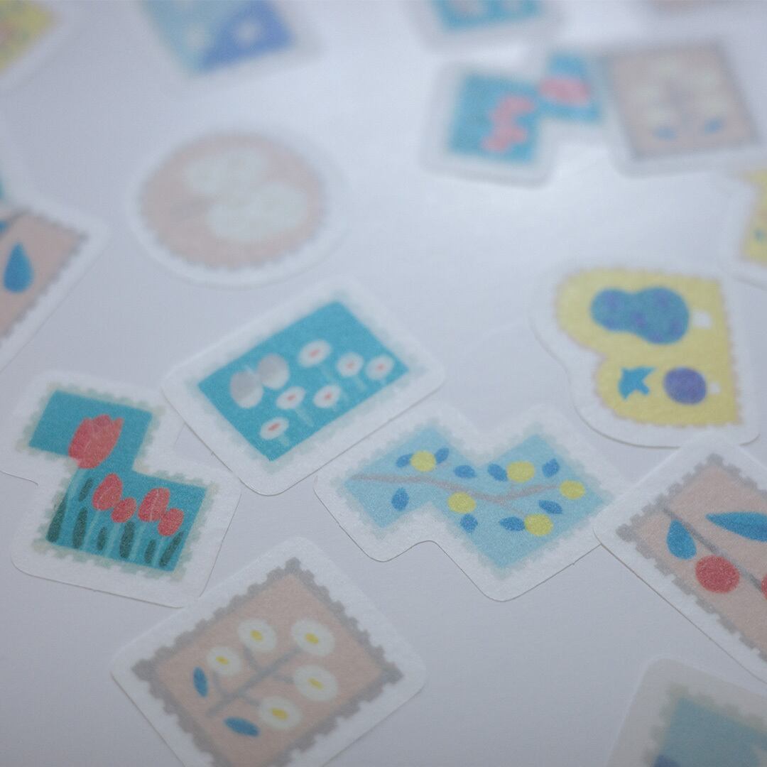 マスキングテープと同じ和紙素材を使用しているので手帳などにも可愛くお使いいただけます。